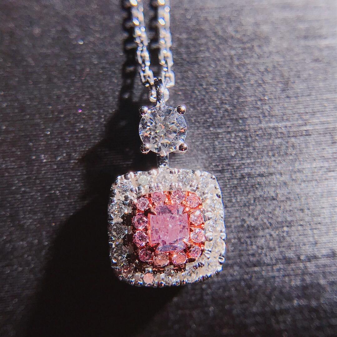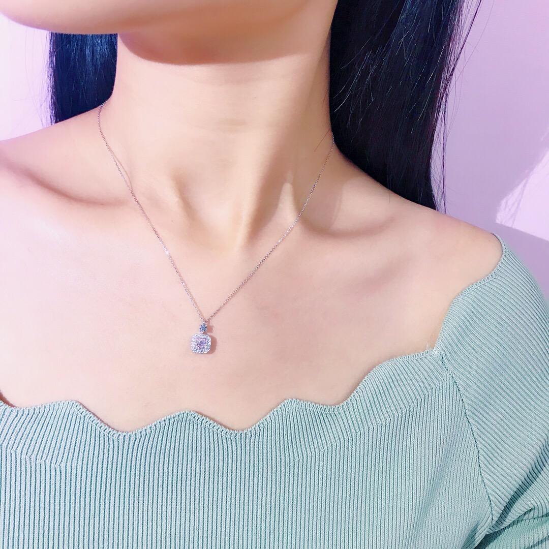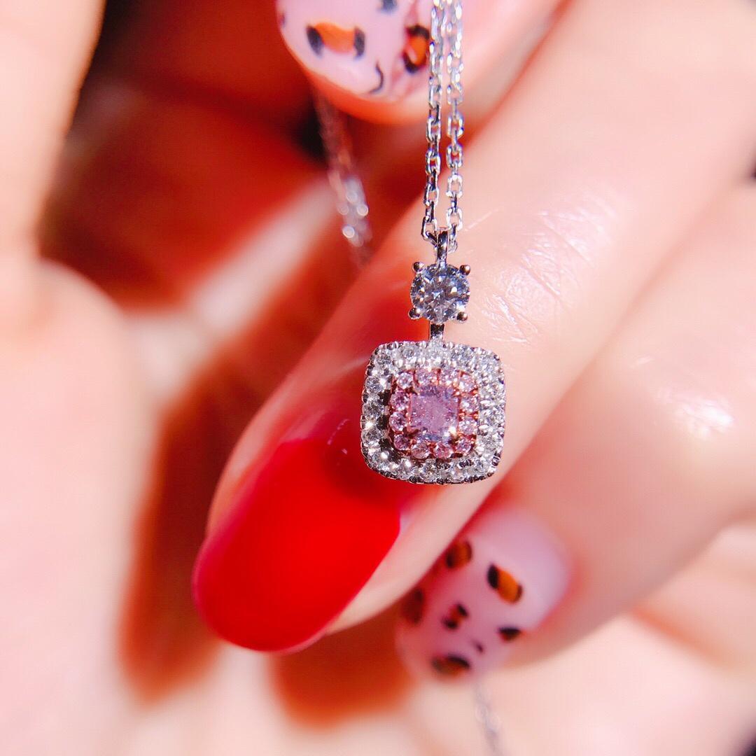 粉钻18k项链,垫形粉主钻,碎钻点缀,展现优雅之美。
